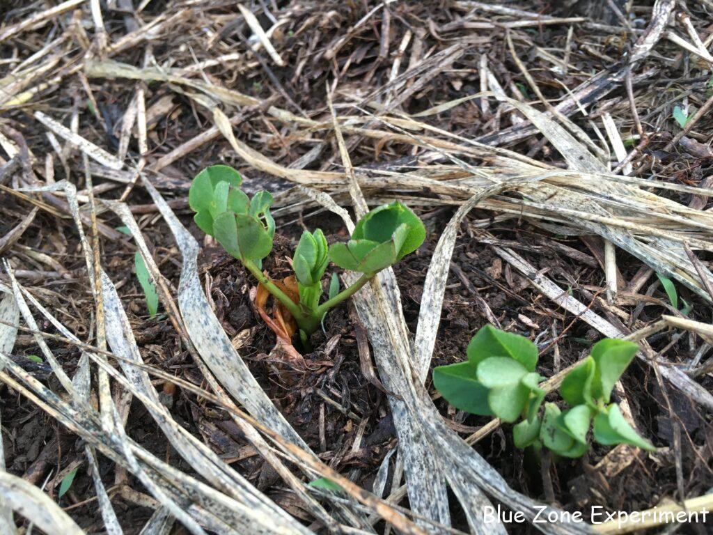 5 月 19 日と 21 日に種をまいた落花生が発芽していました。雨のあとの湿った土に種をまいたので、腐らないかと心配でしたが、無事発芽してくれて一安心です。