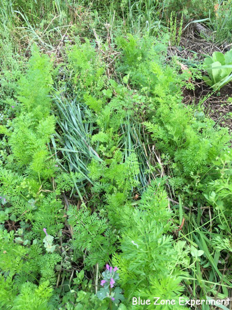 このところ何度かニンジンの種をまいたので、いつまいたものかは定かではないのですが、雨が多いので順調に発芽しているようです。3 月 10 日に種をまいたニンジンも元気です。少し間引きました。