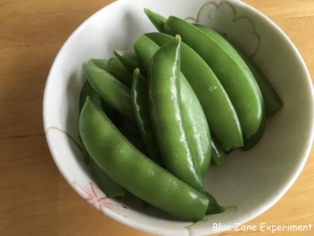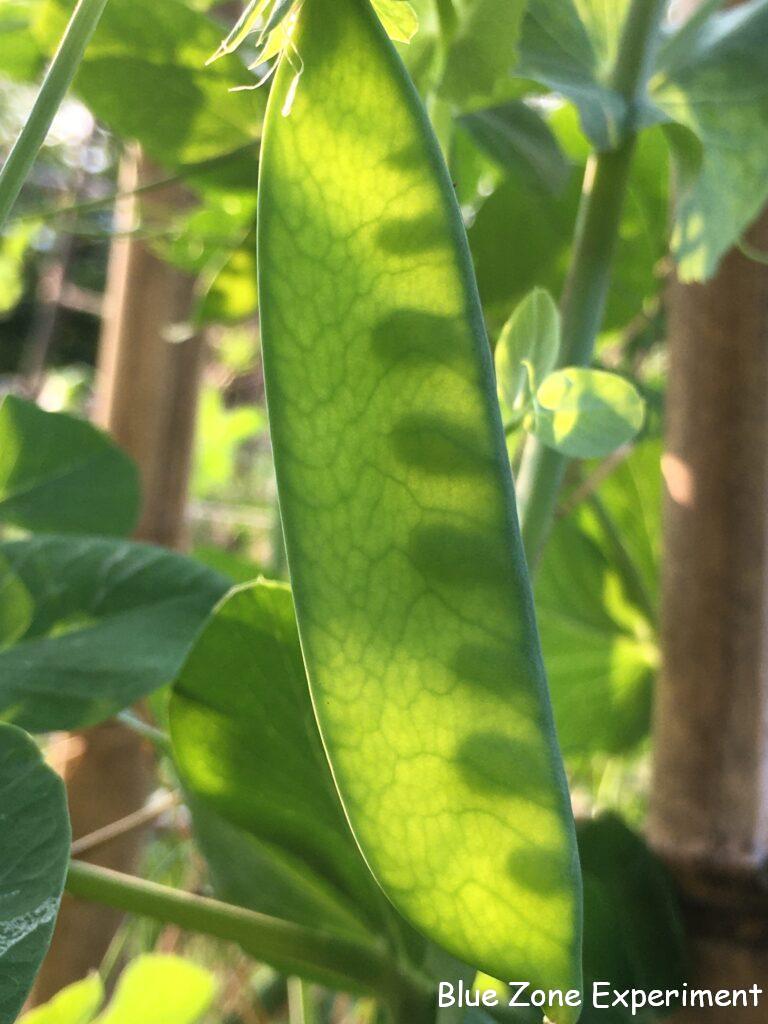 4 日前には、スナップエンドウを初収穫しましたが、今日はキヌサヤもできていました。今朝はたまに薄日が射す程度でしたが、太陽を背景に莢の中が透けて見え、とてもきれいでした。ピッカピカスナップエンドウは、その名の通りピッカピカです。こちらも今日が初収穫。