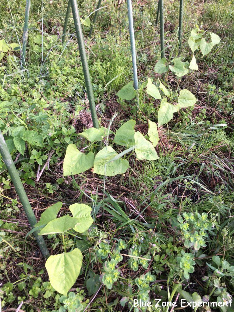 5 月 12 日に種をまいたインゲンは、順調に育っています。豆類の生育は早いです。
