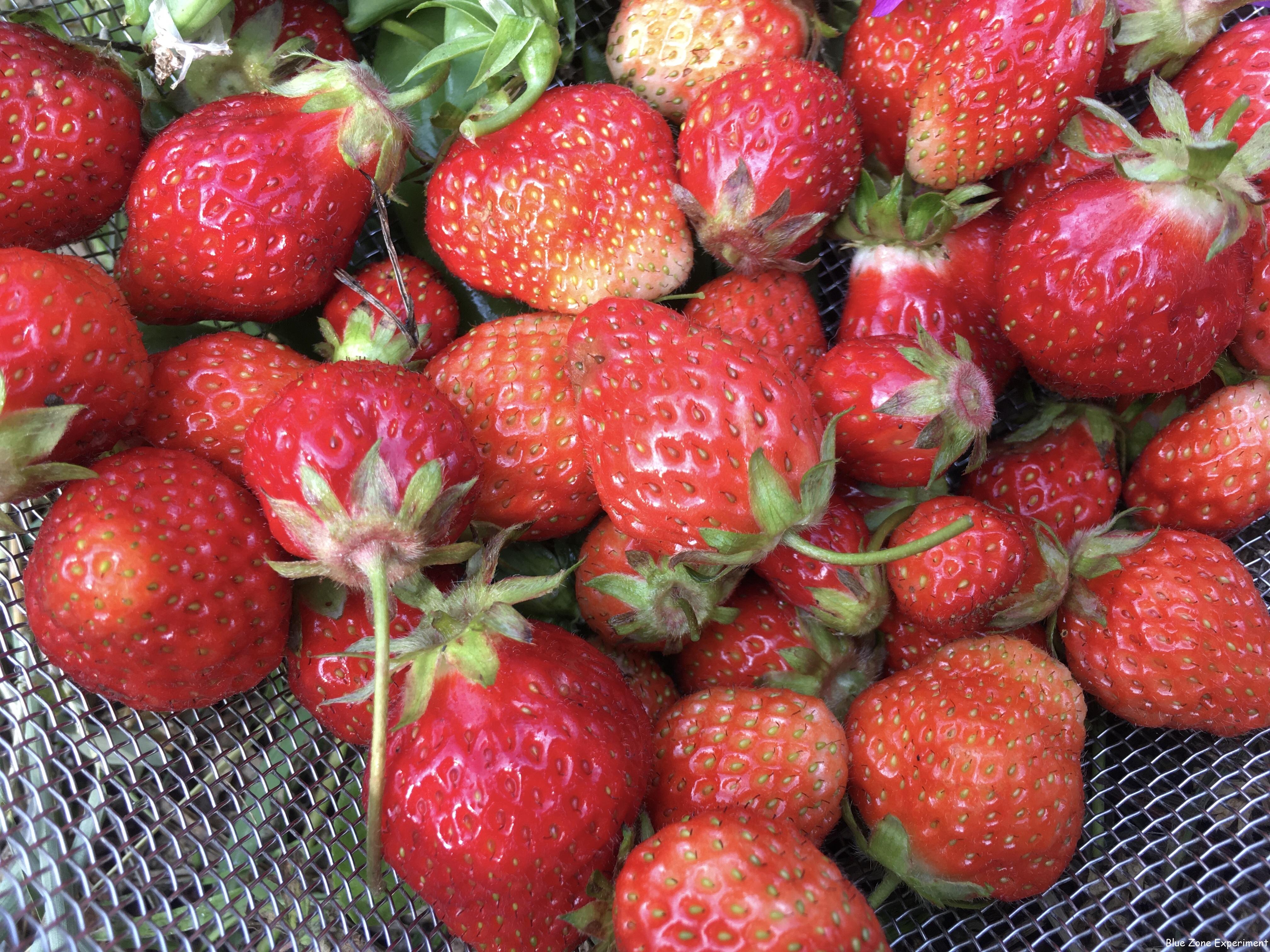 あまり期待していなかったイチゴですが、今日は割とたくさん収穫できました。中には大粒のものもあります。写真は、収穫後に撮ったので、赤いイチゴはほとんど写っていませんが、まだ色づく途中のものもあり、花も少しですが咲いていたので、あと 2 回くらいは収穫できそうです。