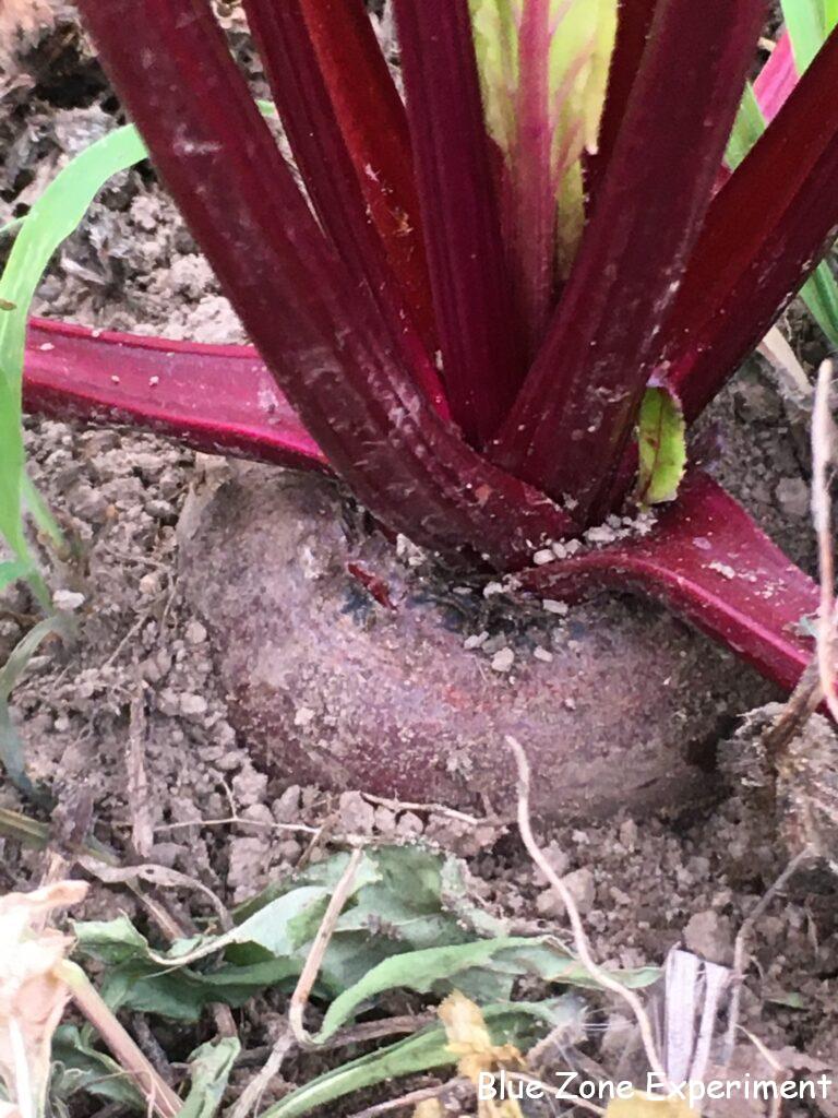 ビーツもカーボロ・ネロ同様、霜にやられてほぼ生き残らなかったのですが、生き残ったものがだんだん大きくなってきました。虫の被害もほとんどなく、美しい姿です。そろそろ収穫してもいいかもしれません。