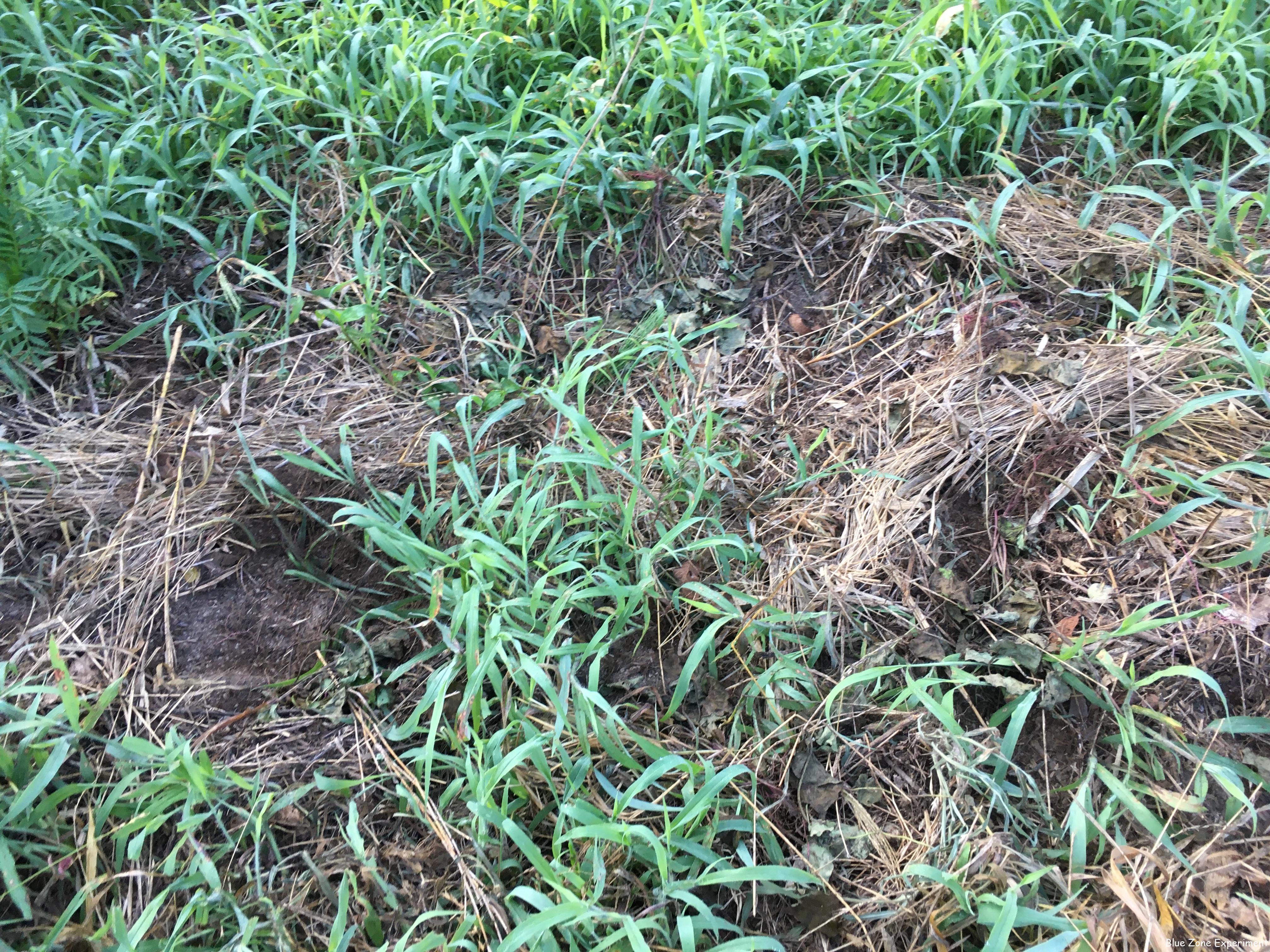 サツマイモは、ほぼ全滅、6 月に二回に分けて植え付けたもので、掘り返されていない株はありませんでした。おそらく、ほとんどは昨日の朝やられていたようです。昨日は晴れて暑かったので、掘られたツルは枯れて再起不能です。今朝も入られたようで、新しく掘られていましたが、まだ葉っぱが枯れていなかったので一応埋めてみました。今日で三日連続イノシシが来ているので、うまく根付いたとしても収穫まで無事だとは思えませんが。気休めに木酢液を少しまいてみました。