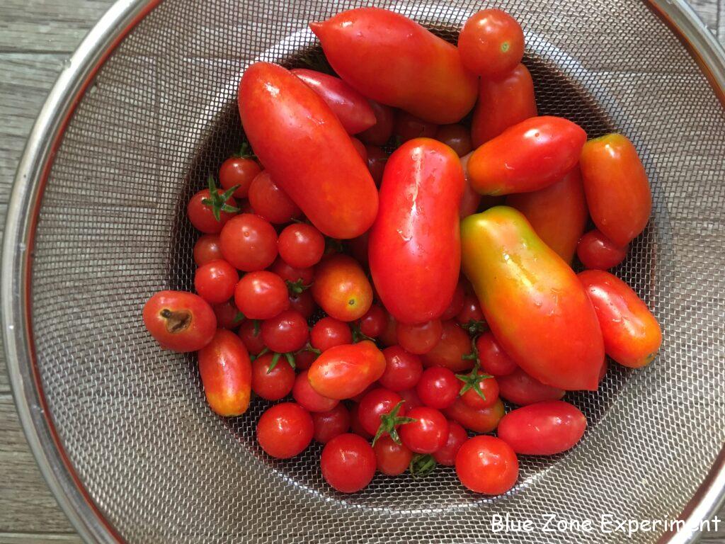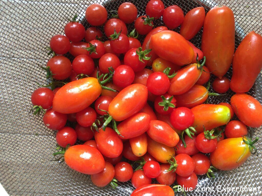 9 月 6 日。ナス、トマト、トウガラシなど、いつものメンバーを収穫しました。オレンジミニパプリカもたくさん採れましたが、一部傷んでいるものが多かったので、すぐに傷んだ部分を切って、一口大にカットして冷凍しました。