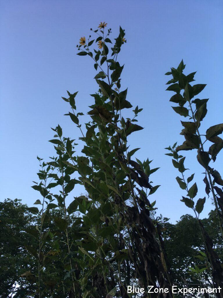 夏野菜のトウガラシ類やナス、トマトは、まだ収穫が続いています。落花生は、今日見てみると、少し葉っぱが病気っぽかったので、ほんのちょっとだけ掘ってみましたが、もう一息という感じでした。キクイモは、暑さのせいか、下の方の葉っぱから枯れあがってきていましたが、涼しくなって元気を盛り返してきたようです。草丈は非常に高く。3 メートル近くありそうです。風で倒れてしまったものもあります。
