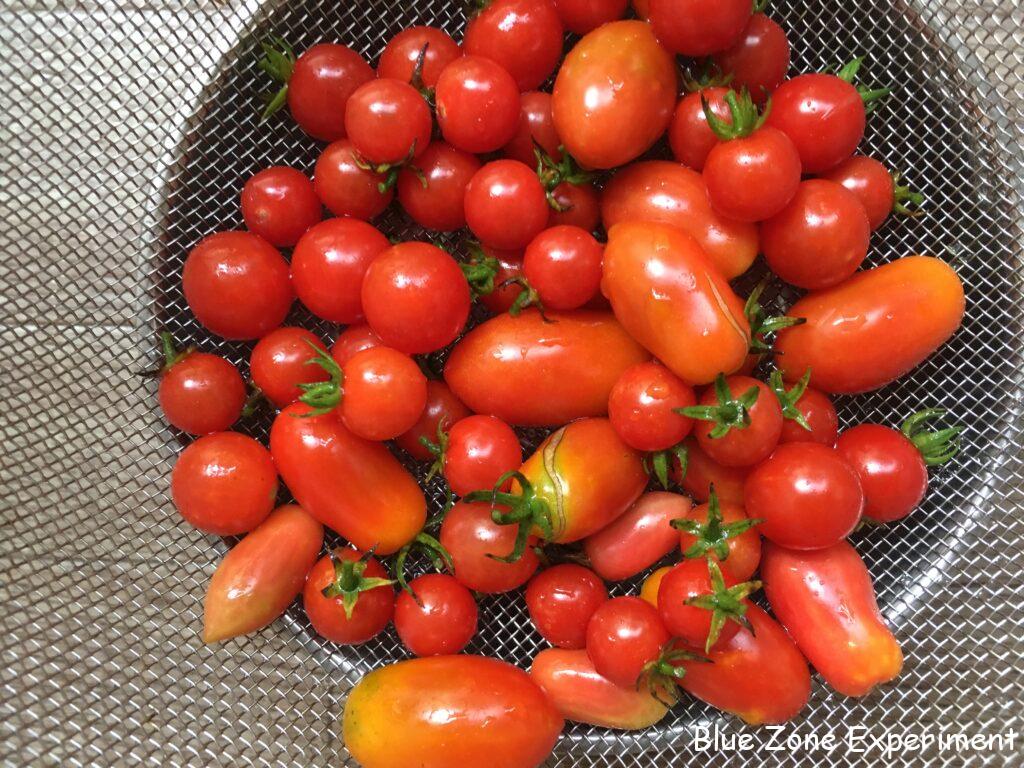 9 月 6 日。ナス、トマト、トウガラシなど、いつものメンバーを収穫しました。オレンジミニパプリカもたくさん採れましたが、一部傷んでいるものが多かったので、すぐに傷んだ部分を切って、一口大にカットして冷凍しました。