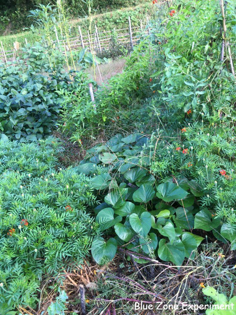 イノシシに掘られてほぼ全滅したサツマイモですが、小さくて見逃された株が育ってきました。生長期間が短いので芋がついているかどうかわかりませんが。そのそばに、別の畝で発芽した小さなマリーゴールドの苗を春に移植しましたが、どんどん広がって、野菜を圧倒するほどの勢いです。かなり刈りましたが、まだまだ茂っています。ウコンは、なかなか発芽せず出だしが遅かったのですが、ようやく大きくなってきました。花は咲いていませんが、地下はどうなっているのでしょうか。写真はありませんが、もっと遅れて発芽したショウガも少しずつ育ってきました。まだまだ小さい状態で、もうすぐ霜が降りる季節なので、まともなものは収穫できそうにありませんが、小さなショウガでもできていればうれしいです。