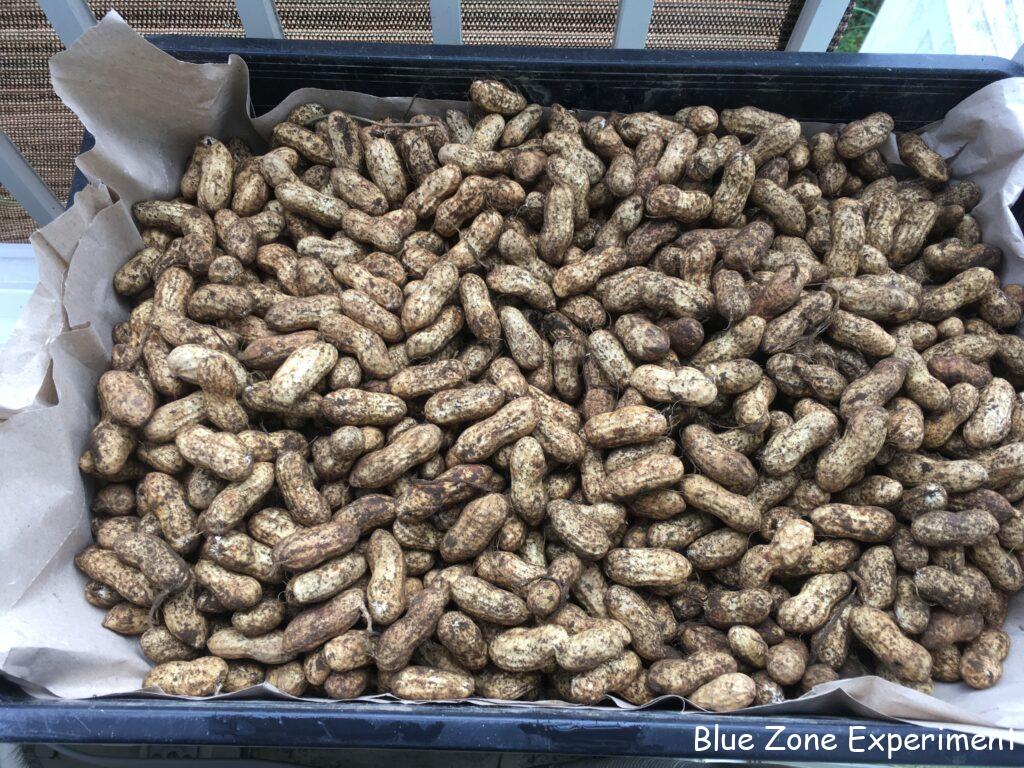 家に持ち帰った落花生は、泥がついたままベランダで干しています。