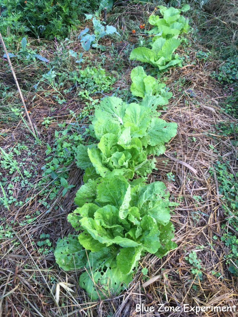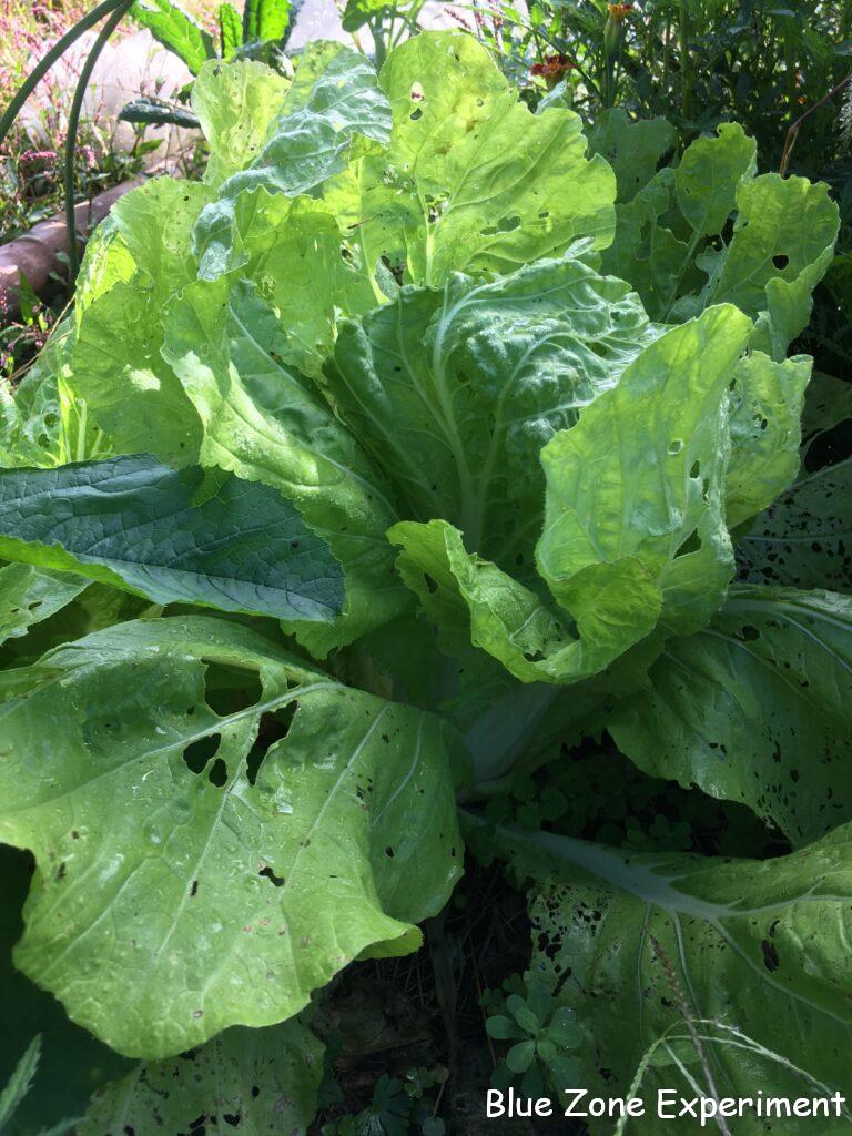 一番大きい白菜が少し巻き始めました! その他の白菜も、虫に食われながらも順調に育っています。