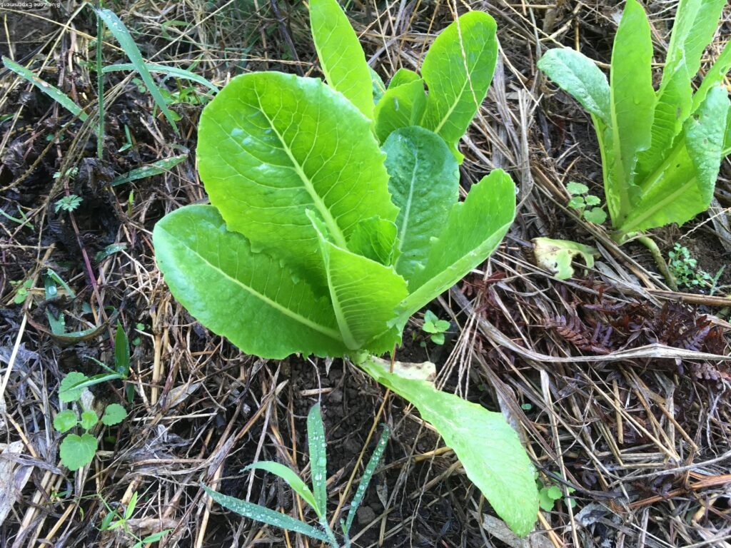 レタスは虫に食われにくいので、ロメインレタスはピカピカのままです。定植したときは徒長苗でヨレヨレでしたが、かなりしっかりしてきました。