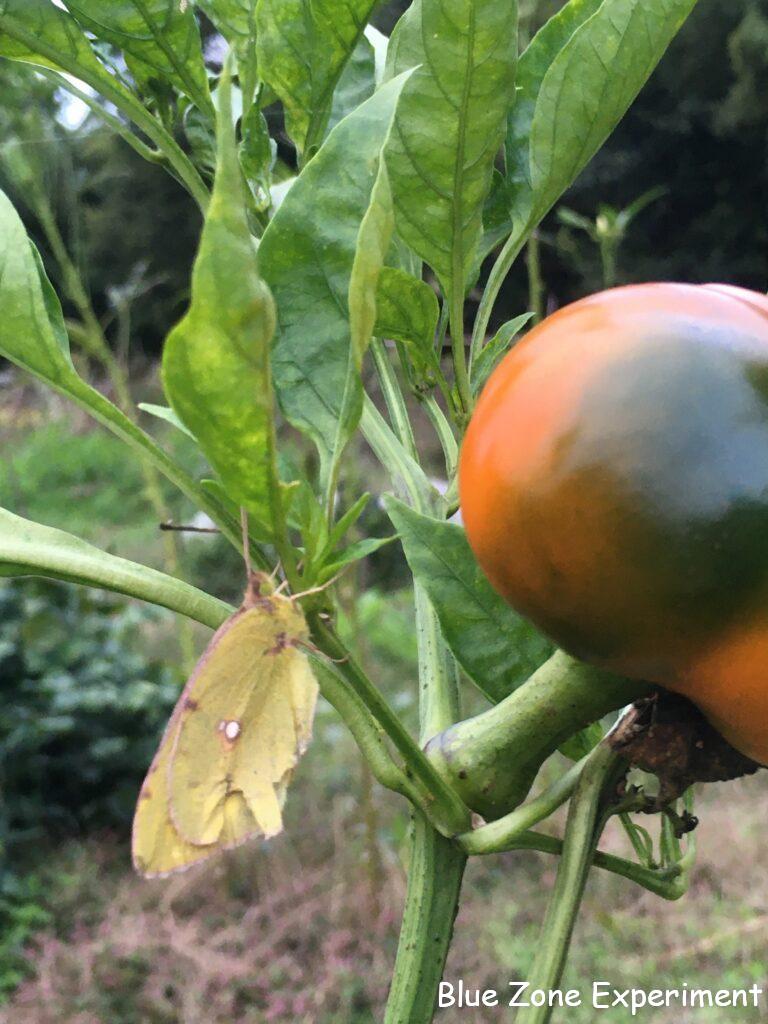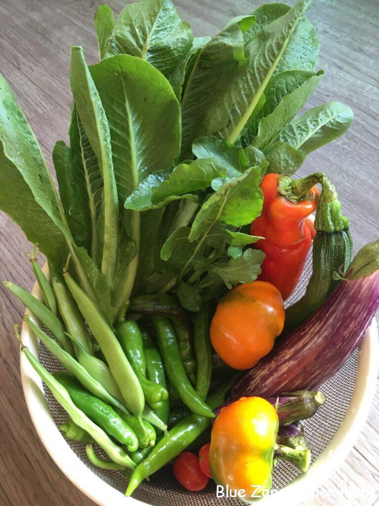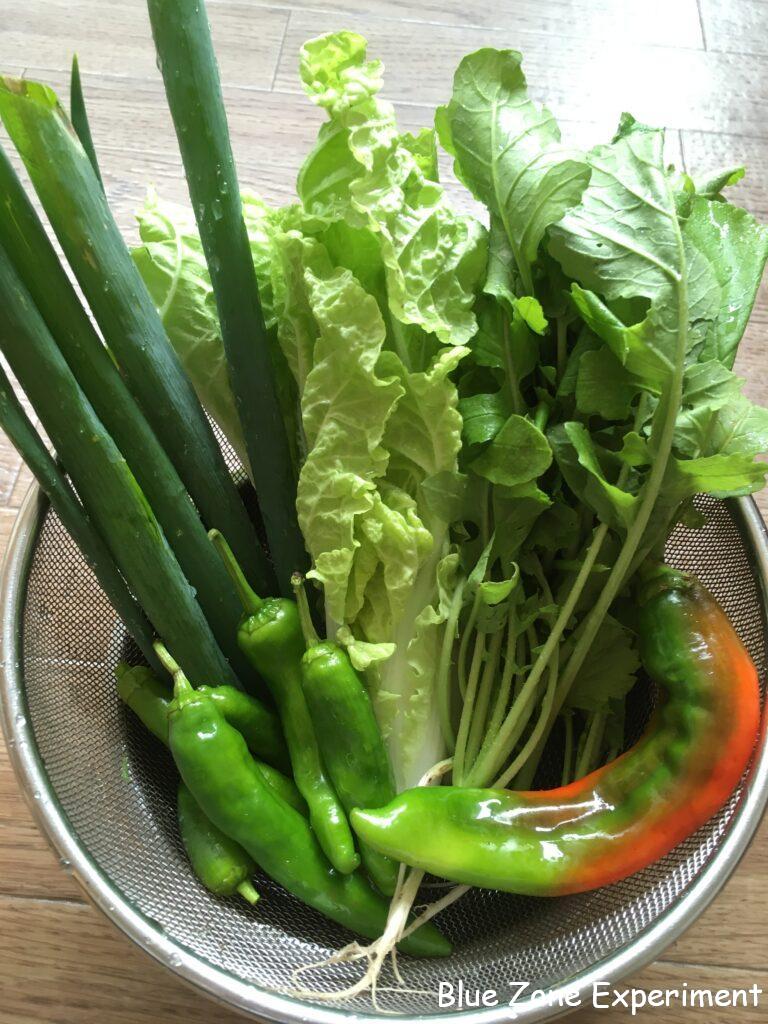 10 月 21 日。白菜や大根の間引き菜や青ネギなど、秋らしい収穫が少しできました。トウガラシ類は、写真はありませんがオレンジミニパプリカもいくつか採りました。今年は去年よかったパレルモが不調で、去年もう一つだったオレンジミニパプリカが好調です。草丈も 160 センチの私の身長を完全に超えています。まさかこんなに大きくなるとは思いませんでした。ネギは、夏の間は暑さで弱っていましたが、今はどんどん分けつしてきています。落花生は、千葉半立で、残っているものが少し枯れてきたので収穫しましたが、まだ成長途中のものが多かったので、もう一週間ほど待ってからすべて収穫しようと思います。だんだん虫食いは増えてきています。今日収穫しなかった場所は、動物にもとられているようでした。ルバーブも始めて収穫しました。春だけだと思っていましたが、夏に暑さでほぼ枯れた後、秋になって復活してきました。収穫したものの写真は撮り忘れました。