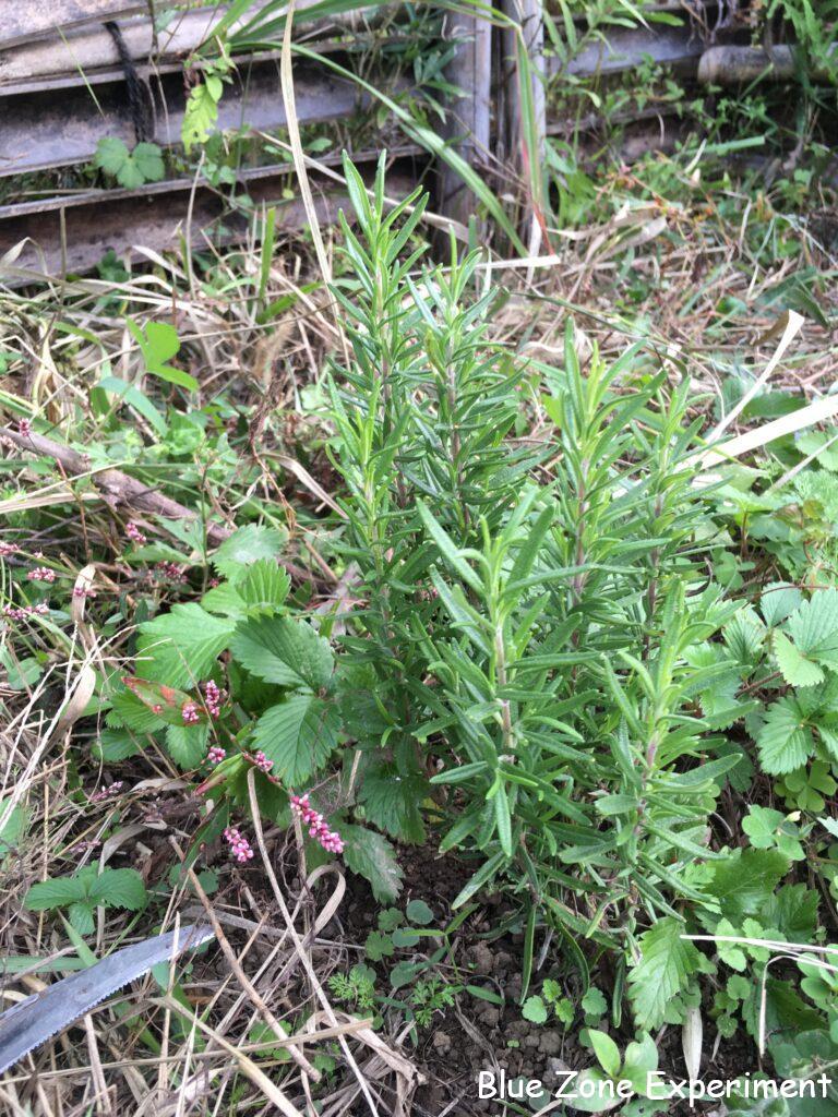 冬に挿し穂をし、春に植え付けたローズマリー。発根して畑に植えてから根付いたものは 5 株ほどありましたが、夏の間に一株だけになってしまいました。猛暑を何とか乗り越えたこの株は、涼しくなってから成長が加速しています。夏の間はじっと耐え忍んでいるだけで全く成長は見られませんでしたが、今は見るたびに葉数を増やし、側枝を延ばして、グングンと育っています。足元のワイルドストロベリーも夏には弱っていましたが、今では青々と元気そうです。ローズマリーはワイルドストロベリーの成長を妨げるので相性が悪いと言われていますが、どうせ広範囲に広がっているので気にしていません。こぼれ種から発芽したオルレアもあちこちに見えます。寒さに強いオルレアは、このまま越冬します。同じハーブコーナーのラベンダーは枯れてしまい、タイムも弱っていますが、セージとミントは秋になって復活してきました。今年の夏は厳しかったので、ハーブもかなりこたえたと思います。チガヤと笹が多い畝なので、今日は草整理をしました。地下茎でなかなかなくならない草ですが、地道にやっています。