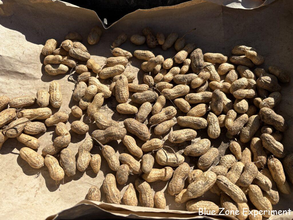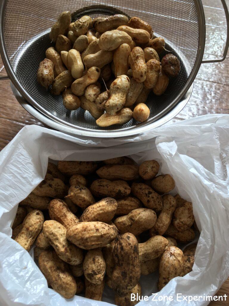 10 月 28 日。朝はかなり寒いですが、まだ霜は降りていないようです。おかげで夏野菜はまだ収穫が続いています。ズッキーニも今頃になって一本収穫できました。インゲンも少し採りました。落花生は、まだ未熟なものがありましたが、葉っぱが枯れてきているところは収穫しました。まだ残っている場所は、特に地力がないので、実も大きくなっていないようです。少しでも長く置いて成長させたいと思い、今日は収穫しませんでした。