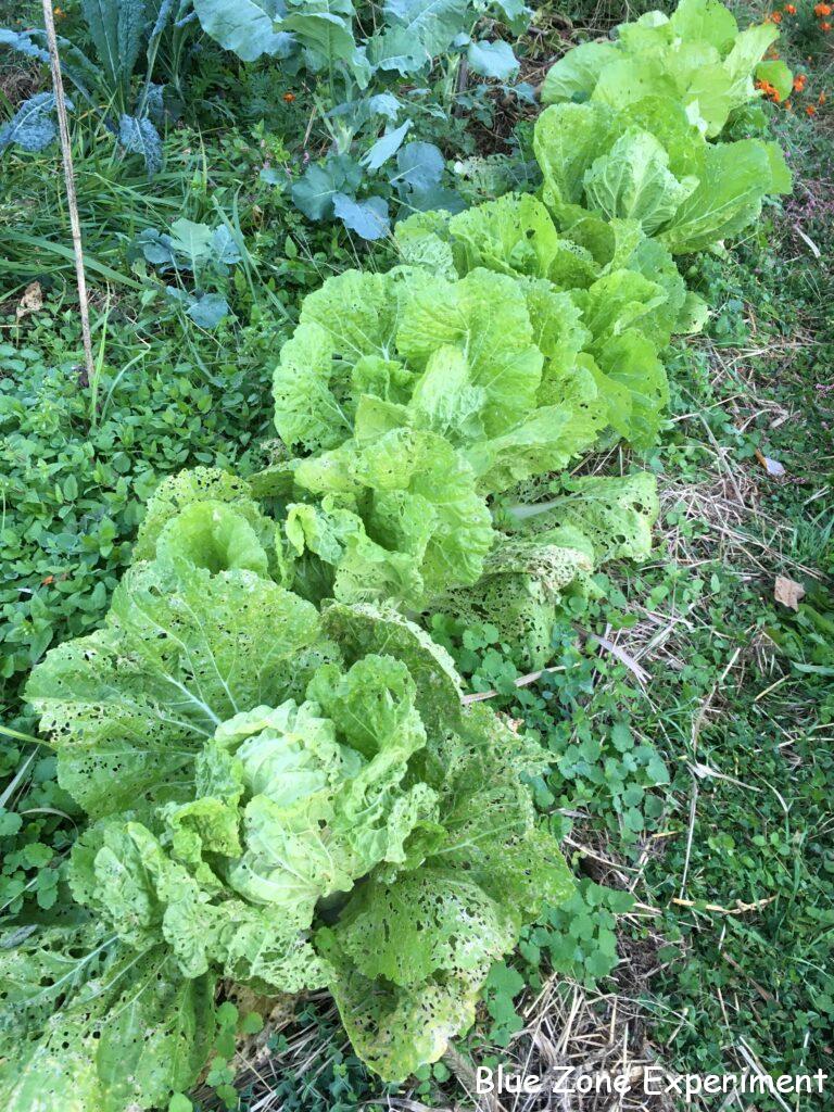 白菜はボロボロながら巻いているものと、まだ巻いていないものがあります。なかなか簡単にはいきません。青梗菜は、小さいながらもそれらしい形になってきました。あまり虫にはやられていません。
