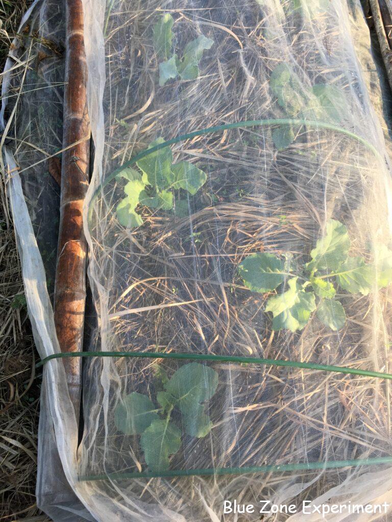 防虫ネットの中のキャベツは、今日見てみると、ネットの外のものより少し大きくなっています。防虫ネットでも少しは防寒になっているのかもしれません。
