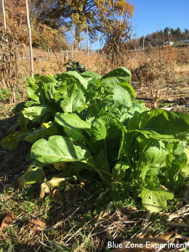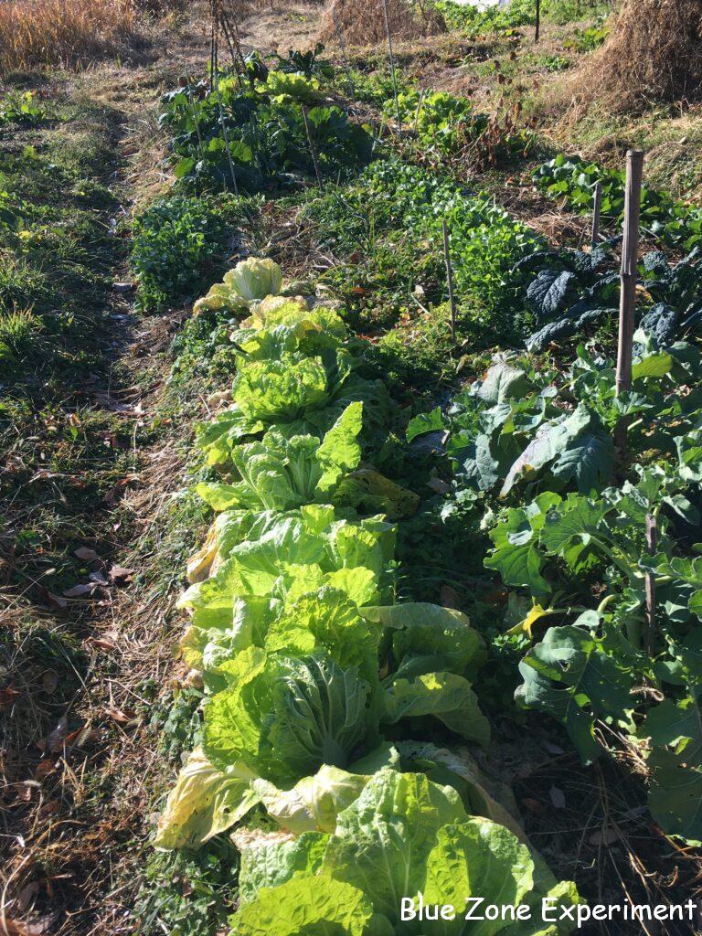 アブラナ科野菜は、霜にも負けず青々としています。この寒いのに、まだ青虫もいます。