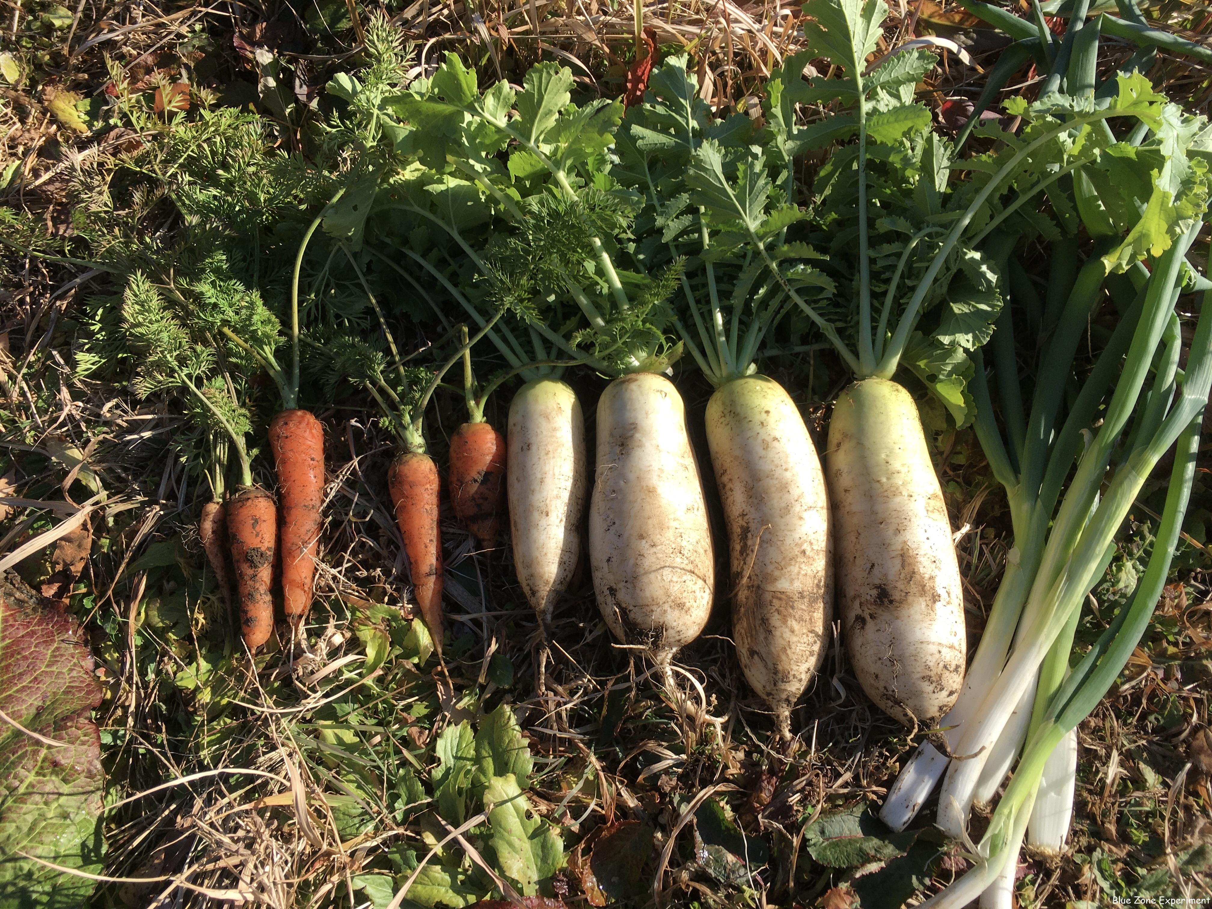 今日は持ち帰るのが重たいほどたくさん収穫しました、大根、ネギ、ニンジン、金カブ、小カブ、白菜、ヤーコン、キクイモ、カーボロネロ、ルッコラ、青梗菜、ターサイ、小松菜など。白菜は虫がたくさんついていて、とても良い状態とは言えませんが、食べられるところは食べようと思います。