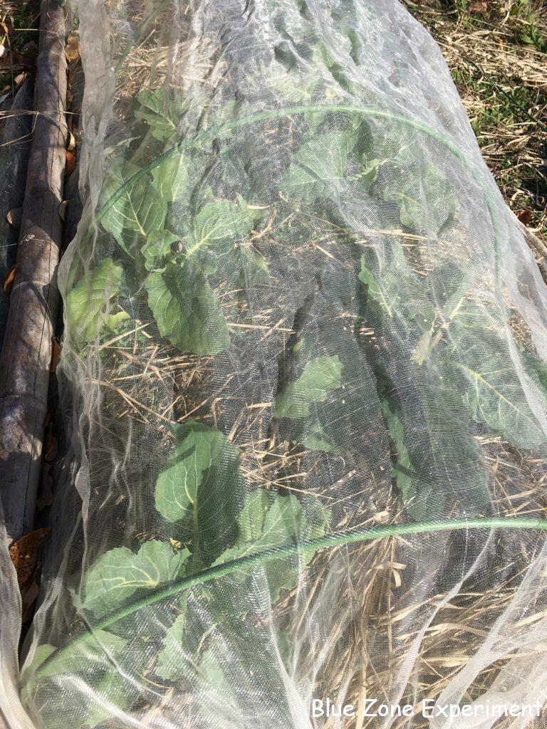 アブラナ科野菜は、霜にも負けず青々としています。この寒いのに、まだ青虫もいます。