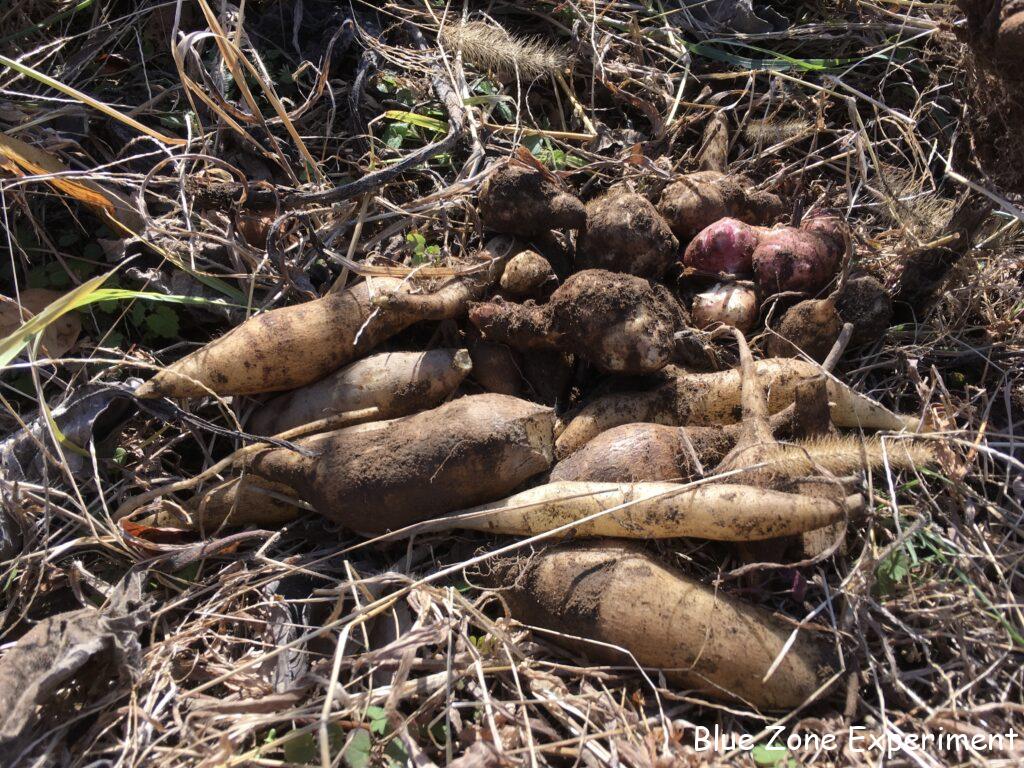 ヤーコンとキクイモは、あまり何も育たない畝で栽培したのですが、簡単にできるはずのこれらの作物ですら出来はよくありませんでした。キクイモは一部掘っただけですが、ほとんど収穫なし。次回、もう少し本格的に掘ってみます。