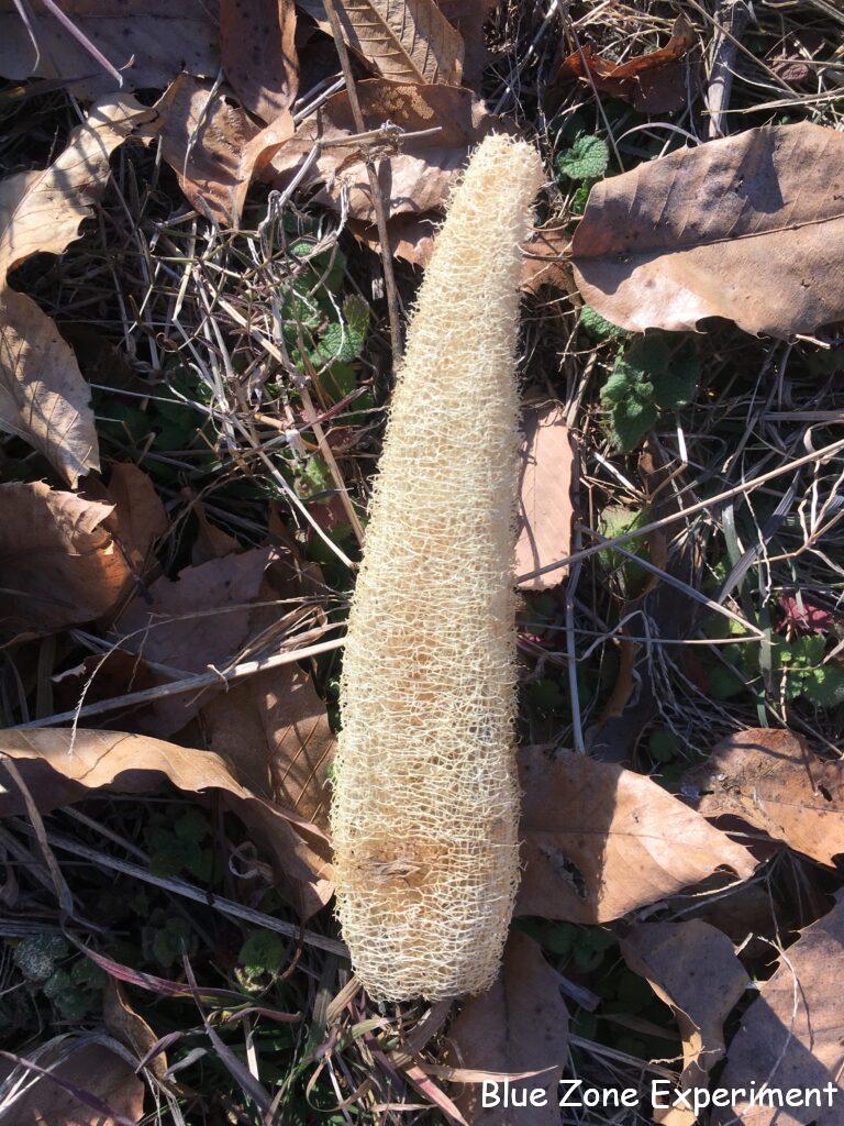 今年は、ヘチマがウリハムシに食べられてほとんど育たなかったのですが、一つカラカラになった実がぶら下がっていました。すっかり忘れていたのですが、完全に乾燥して、皮も簡単にパリパリとむけ、小さいですが、きれいなタワシになりました。