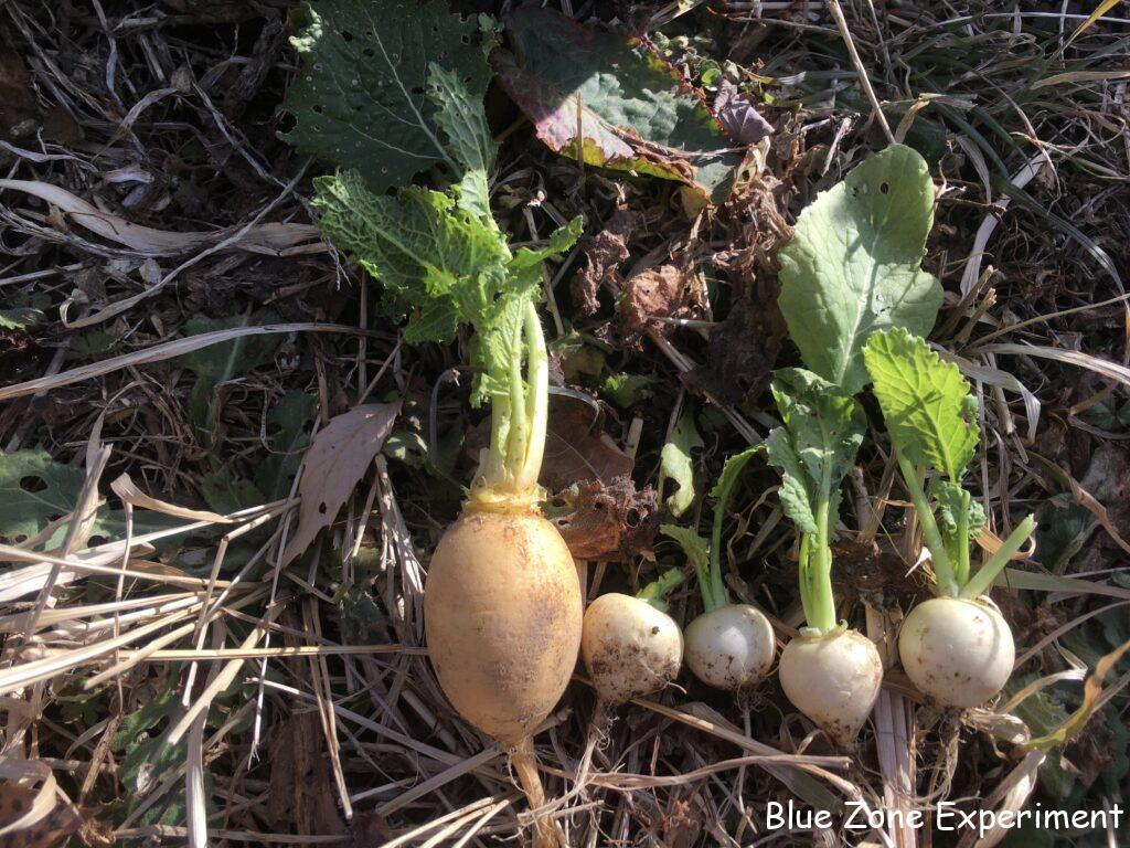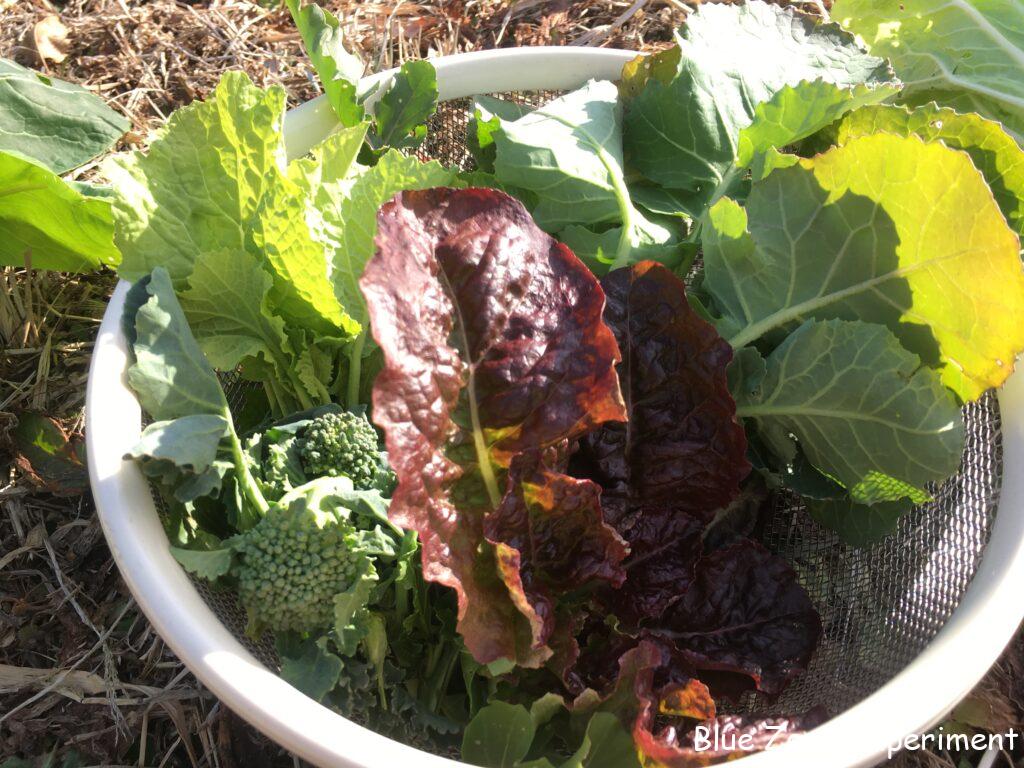 極寒の日々ですが、一人で食べるのには十分な量のアブラナ科の野菜が収穫できています。畝もまだ緑が目立っています。ありがたいことです。