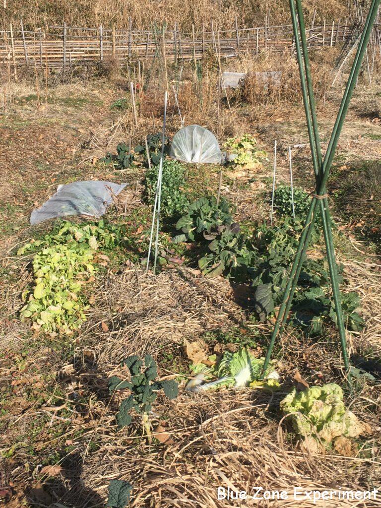 極寒の日々ですが、一人で食べるのには十分な量のアブラナ科の野菜が収穫できています。畝もまだ緑が目立っています。ありがたいことです。