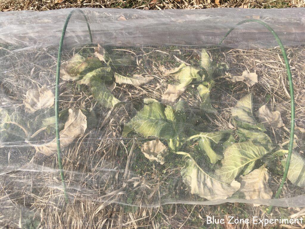 防虫ネット内のキャベツもすっかり枯れてしまっています。これからの寒波を乗り切れるのか、かなり不安な状況です。