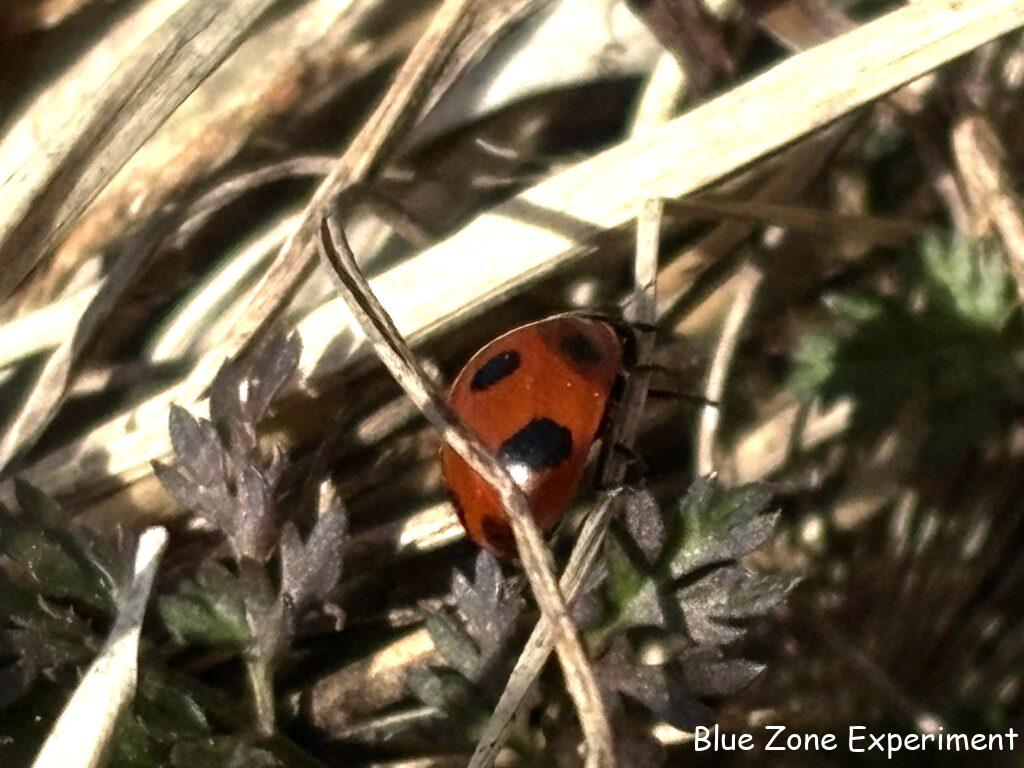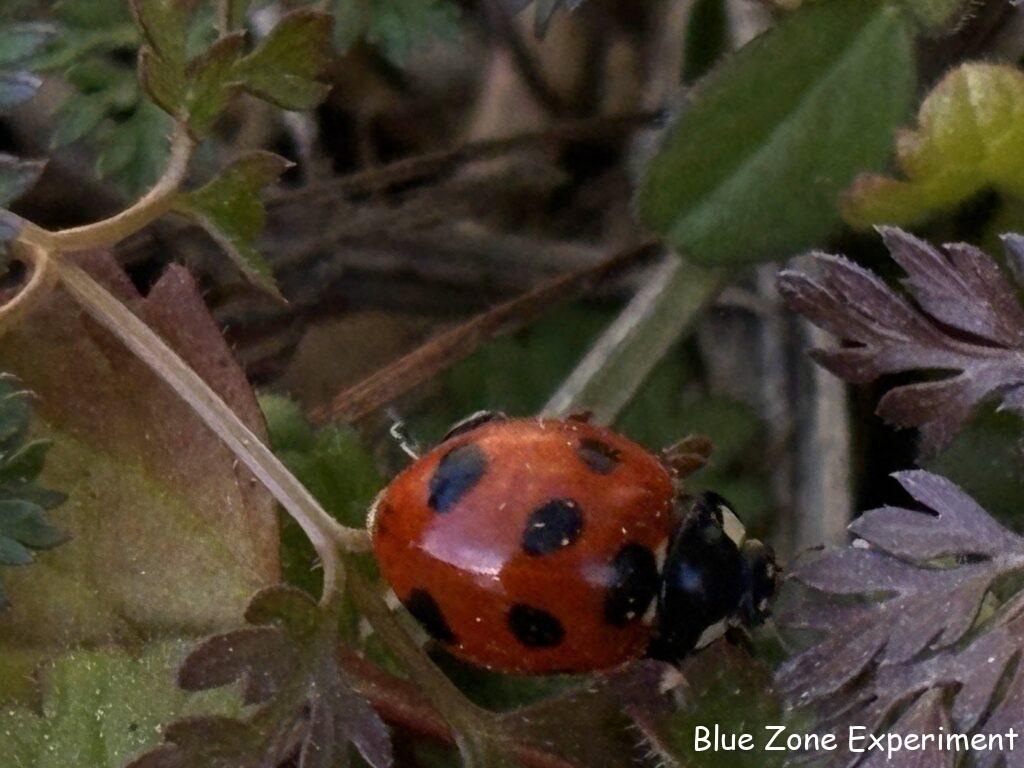 今朝の畑はポカポカと暖かかったので、テントウムシが出てきていました。咲いている花は、ホトケノザだけです。
