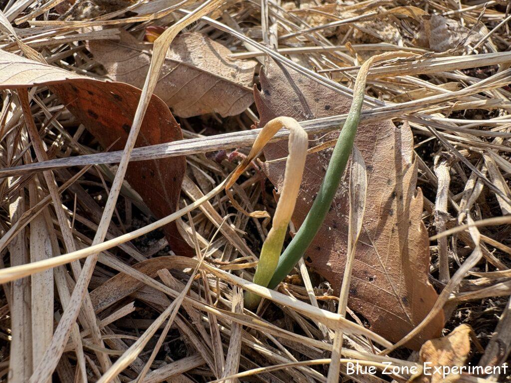 連日の寒さで、ニンニクの葉先はかなり枯れていますが、幸いすべて生きているようです。全滅したかのように見えたタマネギも、よく見ると、何とか生き残っています。暖かくなって、成長してくれますように!