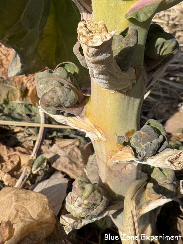 私の畑で最も寒さに強そうなカーボロネロは、葉っぱは緑ですが、虫に食われてボロボロです。他のものはほとんど枯れ果てているので、集中攻撃にあっているようです。この時期は寒くて成長が追い付かないので、食べられるとどうにもならない感じです。春には元気を取り戻してくれるといいですが、その頃にはとう立ちですね。寒さに強いカラシナも、さすがにこの寒さには耐えられず、ヨレヨレになっていました。キャベツも無残な姿です。