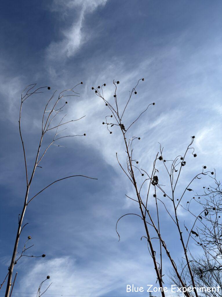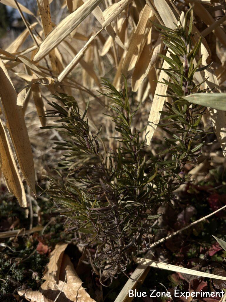 ハーブコーナーでは、サフランの葉が青々としていました。去年は冬には姿が見えなかったと記憶しているのですが、株が成長して、耐寒性が上がったのでしょうか。去年は、どこにあるかも定かでなかったので、そのまま植えっぱなしにしましたが、本来は、春に球根を掘り上げて干しておき、夏の終わりごろに植えるのが良いようです。同じくハーブコーナーのローズマリーも寒さに負けず、何とか緑を保っています。クリムゾンクローバーは、まだ緑ですが、霜ですっかり倒れています。今週末も強い寒波がやってきそうですが、そうはいってももうすぐ暖かくなるので、何とか生き延びてくれそうです。
