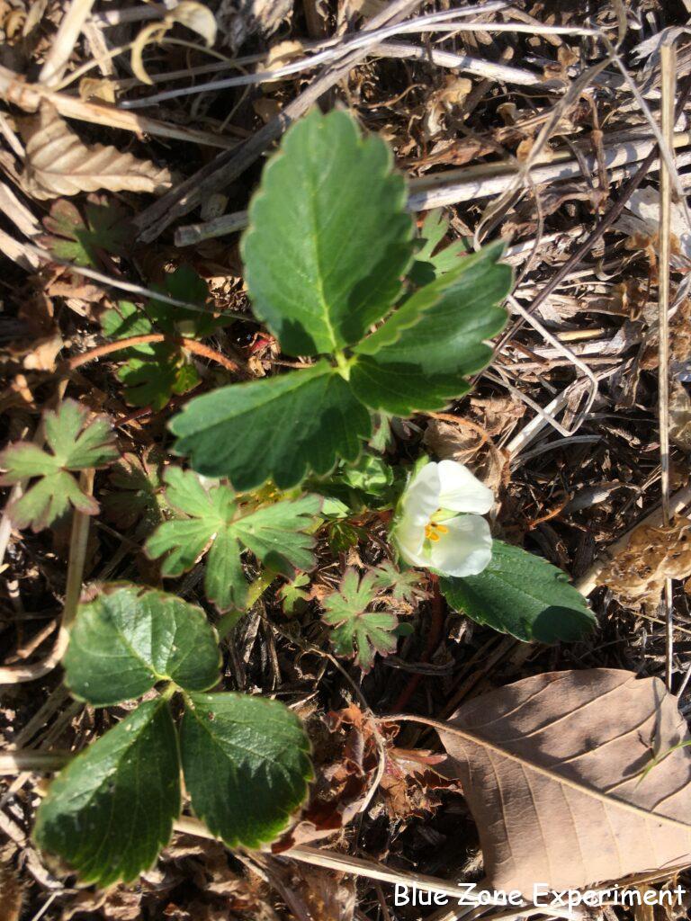 イチゴは、非常に小さいまま、花を付け出しました。このまま大きくならないのでしょうか…。この畝では育たないので、秋には別の畝に植え替えようと思っていますが、それまで持ちこたえてくれるかどうかも怪しい感じの小ささです。