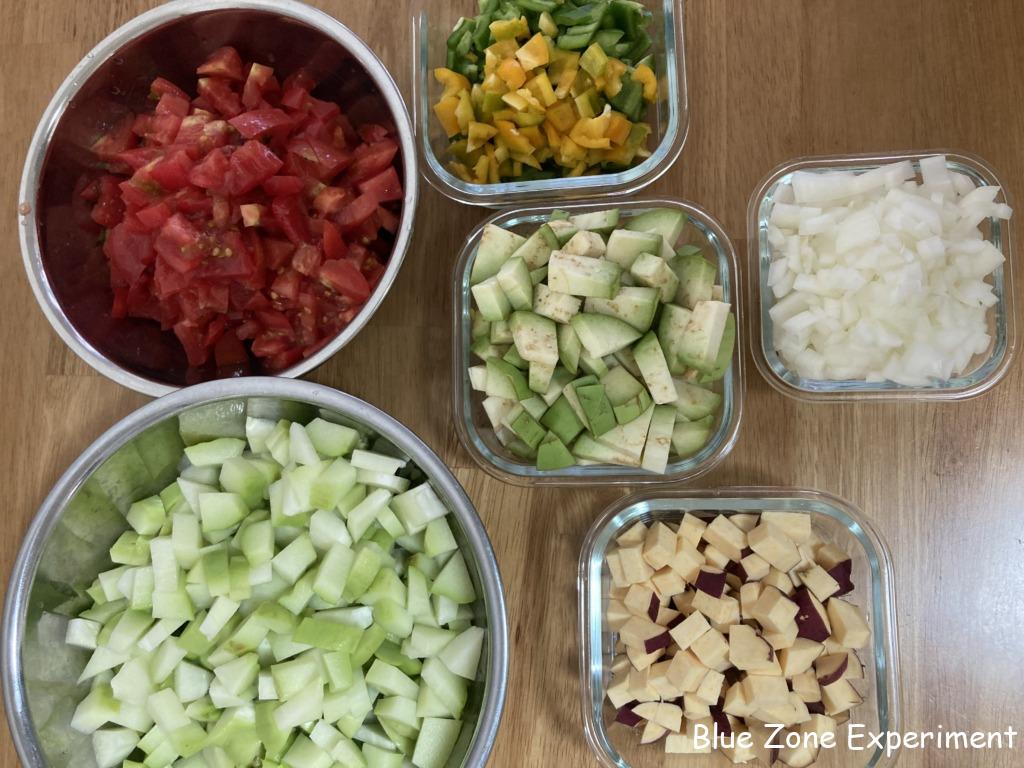 まず、毎日の料理を簡単にするためにできることは、前にも書きましたが、休みの日にまとめて買い物をして、下ごしらえをしておくことです。冷凍野菜、豆の水煮、トマトの水煮などを活用すれば、時間が短縮できます。また、休みの日にスープなどを大量に作っておけば、味を変えたり、中身を足したりしながら、数日間食べることができるので便利です。蒸し野菜とソース・ドレッシング類を作って冷蔵庫に入れておいてもいいですね。朝食は、数日分まとめてオーバーナイトオーツを作っておけば、忙しい朝の時間が節約できるので、お弁当作りに時間がまわせるかもしれません。葉物野菜を含めた緑黄色野菜は大量に摂る必要がありますが、料理しきれない場合は、スムージーにして飲むと、簡単に摂取することができます。そのまま食べるのが理想的ではありますが、ホールフーズプラントベースのお医者さんでも、必要な栄養素を十分に摂るために、スムージーを食事に取り入れている人は多いようです。