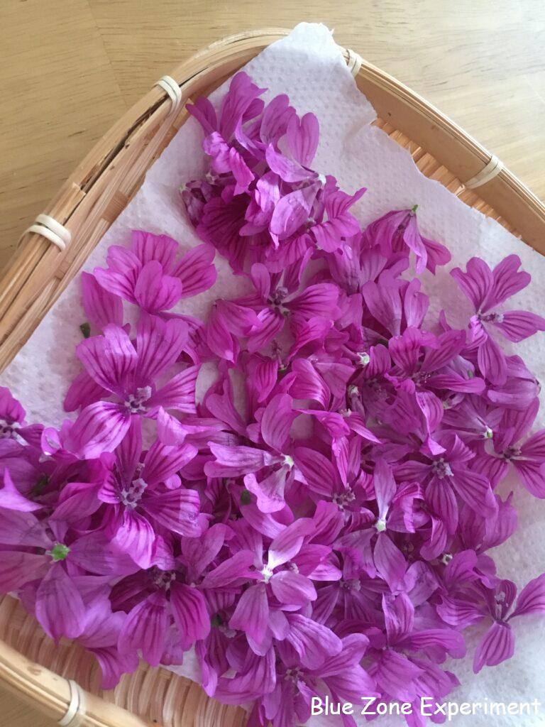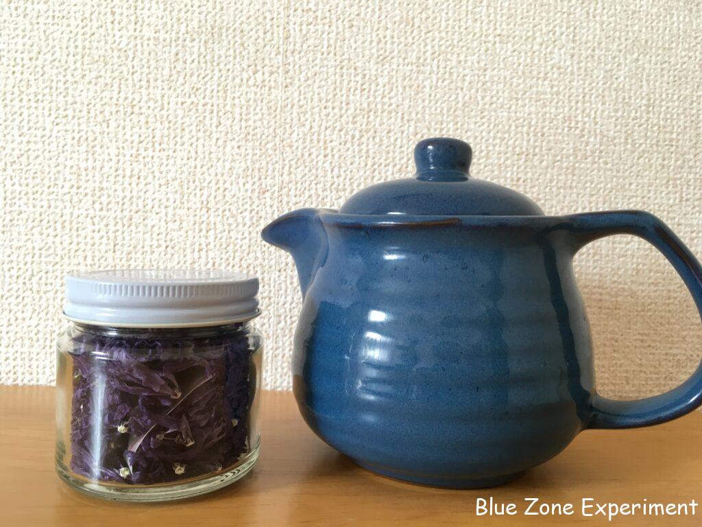 畑にブルーマロウの花が咲いています。私が植えたのではないのですが、前にこの畝を使っていた人が育てていたようで、勝手に生えてきました。株も大きくなって次々に花をつけているので、せっかくだからハーブティーに利用することにしました。ブルーマロウは、その名前の通り、青いきれいな色が特徴のお茶です。
