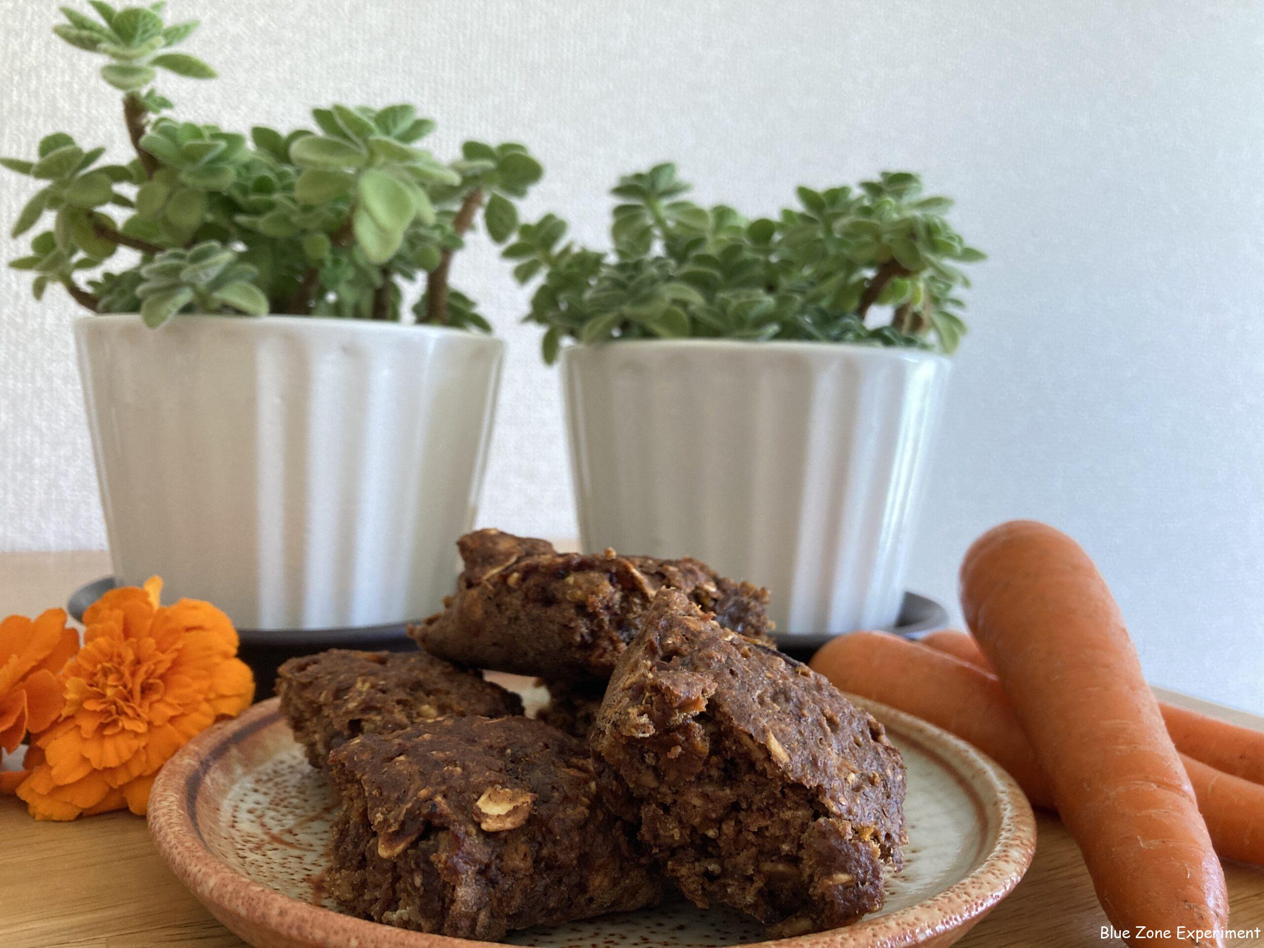 はじめてキャロットケーキを食べたのは、 30 年以上前にカナダに行ったときでした。手作りのキャロットケーキは、スパイス(ショウガやシナモン)が程よくきいていて、甘くフワフワしたケーキでした。ニンジンでこんなにおいしいケーキができるのだなぁとびっくりした記憶があります。改めてレシピを検索してみると、砂糖、植物油、卵などが使われていて、アイシングにはクリームチーズとグラニュー糖を使うものが多かったです。今回はそれらの材料を使用せず、アイシングもない素朴で簡単なヘルシーバージョンをご紹介します。