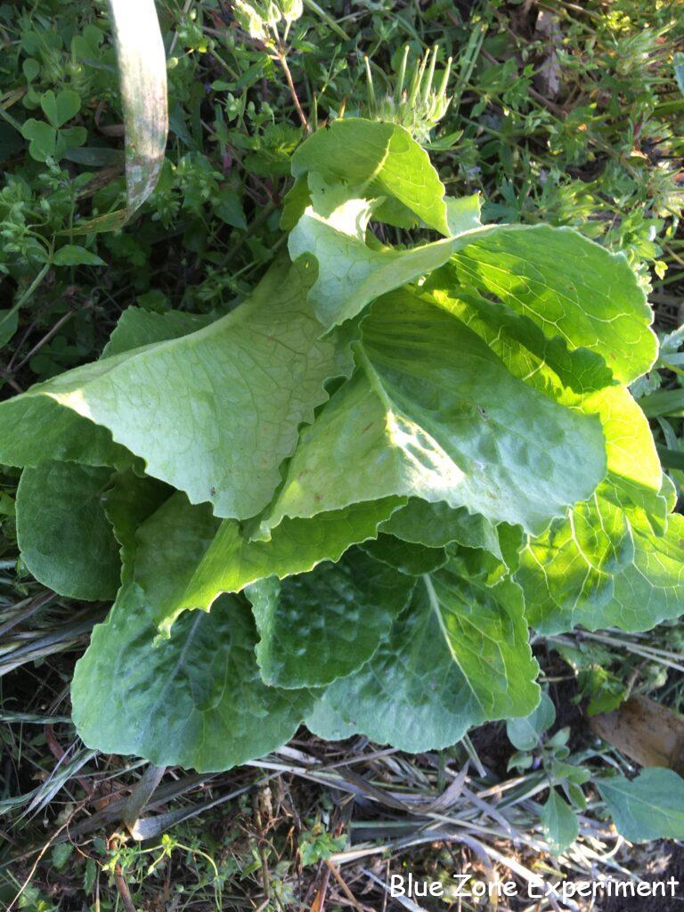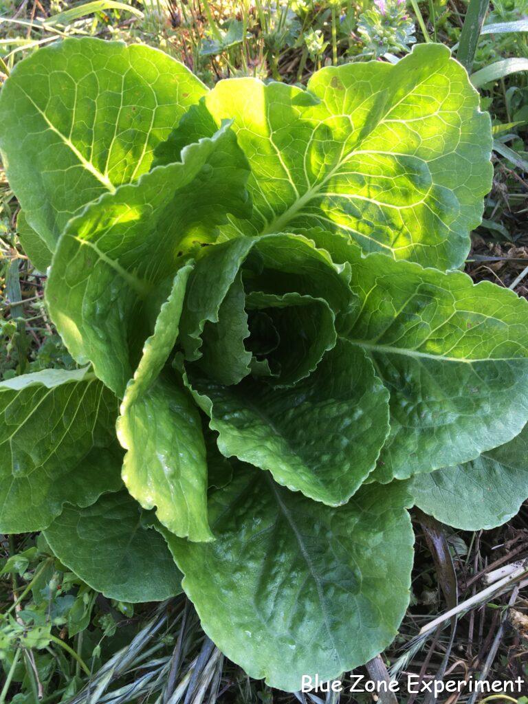 6 月 5 日には、割と立派なロメインレタスが収穫できました。半結球タイプですが、巻いてはいません。その日も今日と同様、エンドウやイチゴを収穫しました。