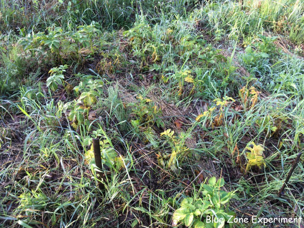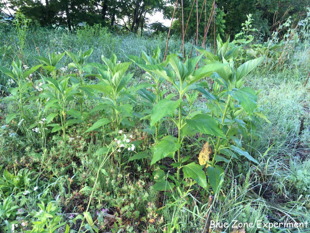 ヤーコンとキクイモは、すこぶる健康そうに育っています。ヤーコンは、発芽していないものもありますが、親芋の保存状態が悪かったのだと思います。一緒に地中に埋めて保存していたサトイモは、植えたもののほとんどが発芽せず、掘ってみると白くとろけていました。
