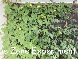 下の写真は、7 月 22 日に撮影したものですが、この頃、ゴーヤのツルがミニトマトの背丈を抜きました。