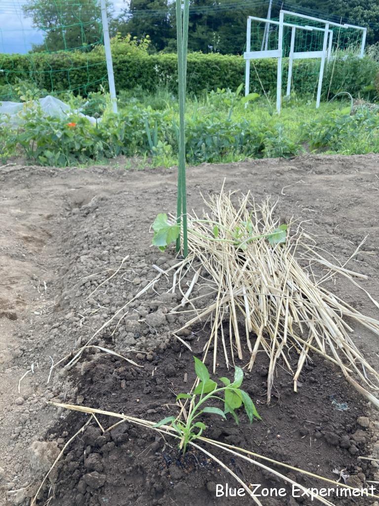 5/31 #4 激辛トウガラシの苗をズッキーニの間に植える。