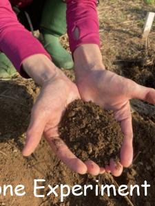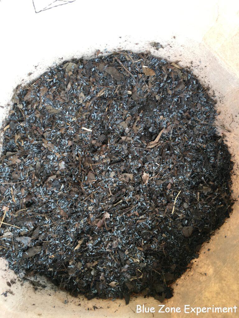 一部を取り出して減ってしまったコンポストの中には、畑の土ともみ殻燻炭を足して、元と同じくらいの量にしました。足すのは腐葉土でもいいのですが、畑があるので畑の土を使いました。