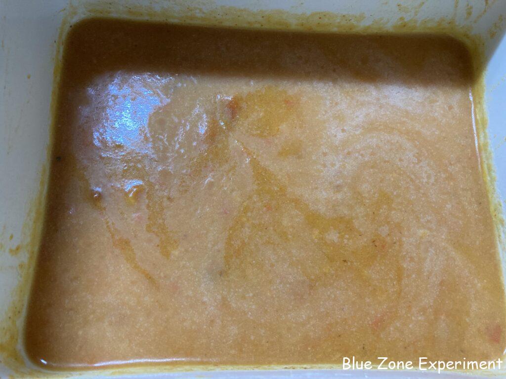 4. 最初の数日は、カビが発生しないように、毎日よくかき混ぜます。数日で泡がブクブク出て来て発酵しているのがよくわかります。この段階では、アルコールっぽい匂いがします。その後、アルコールが酢に変わっていくのですが、その際に白い膜も張るようです。何日後に白い膜が張ったのかは記録していなかったので残念ながら忘れてしまったのですが、その頃からは、カビの心配が減るので、混ぜるのは 2~3 日おきでよさそうです。