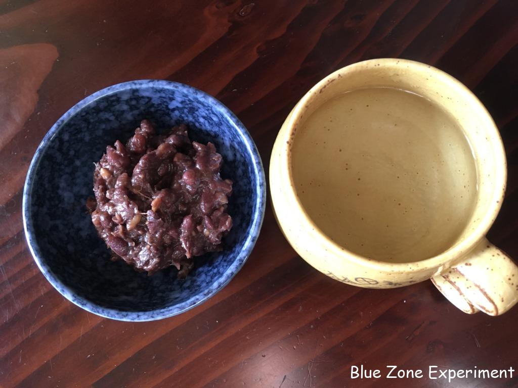 食事は、葉物野菜がやや少なかったようにも思いますが、大体バランスよく食べる事ができたと思います。とら豆の水煮がなくなったので、今度は小豆を煮ました。水煮にしただけの状態のものを料理用に少し残し、あとはデーツを追加して自家製あんこを作りました。