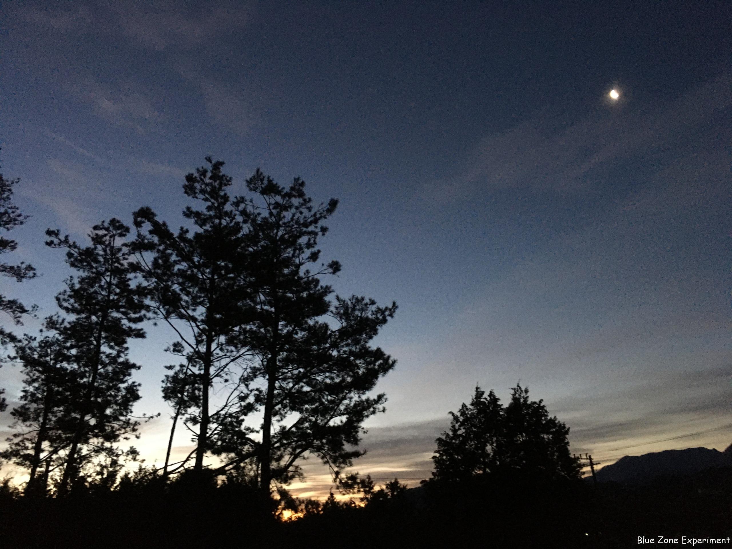 今朝の窓からの景色は、雑木林、月、星、そして朝焼け。写真では月と星がうまく写っていませんが、とてもきれいでした。日の出前と日の入り後の空の色がとてもきれいだと思うのは、私だけでしょうか? 藍色の空には、なぜか惹かれます。