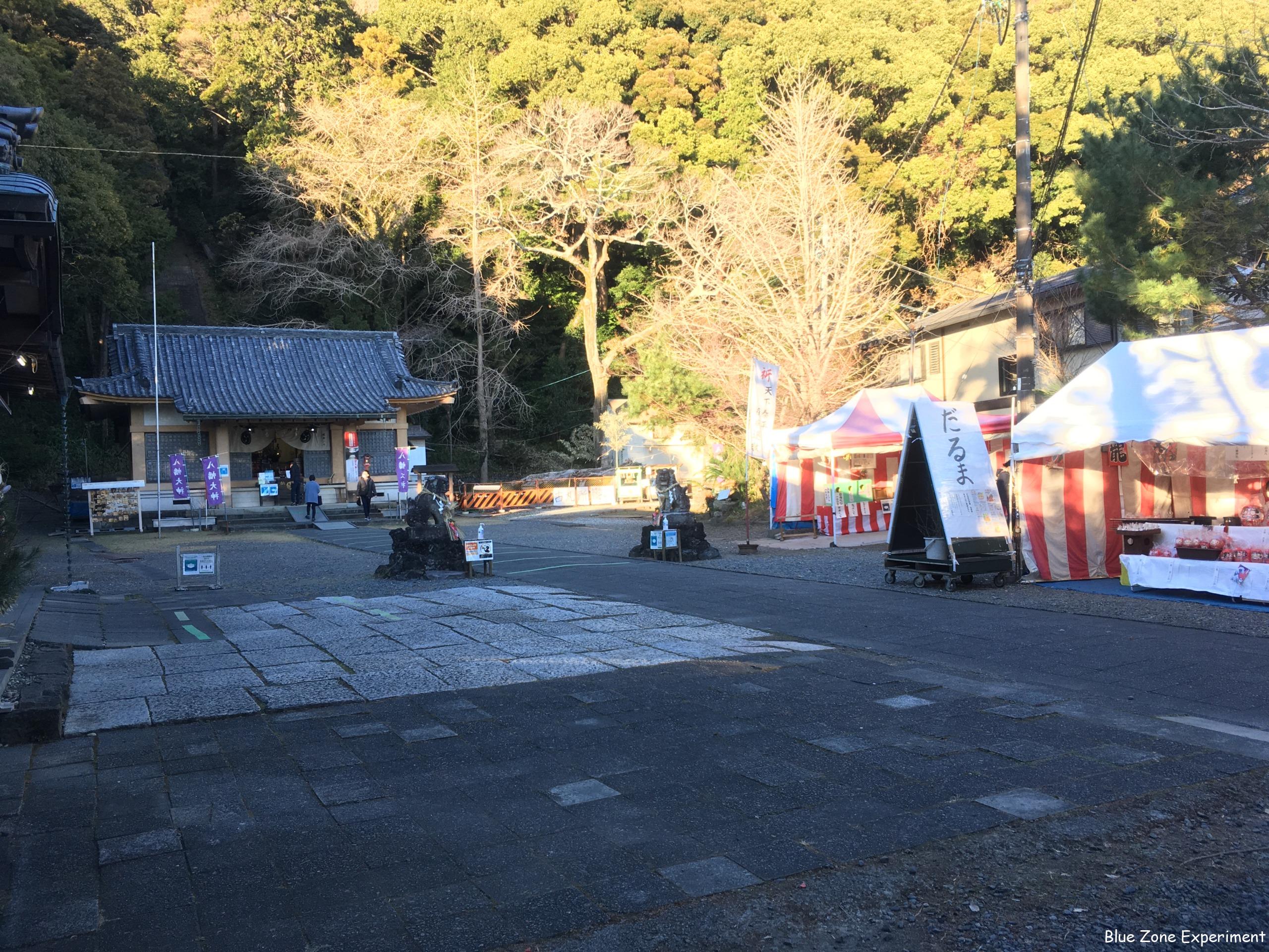 無事三日坊主にならず、 4 日目に突入です! 3 日目に散歩に行った神社の本堂(写真参照)のうしろに見える小さな山に登ることにしました。急な階段もあり母と一緒に登りきれるか半信半疑でしたが、母はやる気満々だったので山頂を目指すことにしました。まずは、お参りをして登山開始です。手すりは、あったりなかったりなので、母は私の手を支えに進みます。途中広場のようなものがありましたが、木に囲まれて見晴らしはなし! それなりに登ってきたのにこんなものか、と少々残念な気持ちで引き返そうと思いましたが、人がたくさんやって来たのが見えたので、先に何かあるのかもしれないと、もう少し進んでみることにしました。すると、そこが山頂! 山、海、街が一望できて、達成感を味わうことができました!